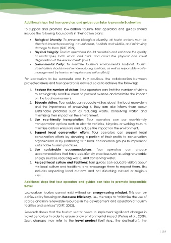 T o s u p p o r t a n d p r o m o t e l o w c a r b o n t o u r i s m , t o u r o p e r a t o r s a n d g u i d e s s h o u l d