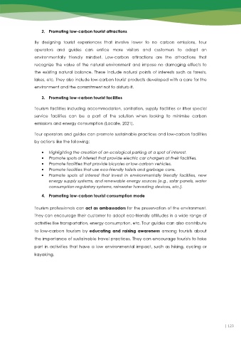 T Tour operators and guides can promote sustainable practices and low-carbon facilities