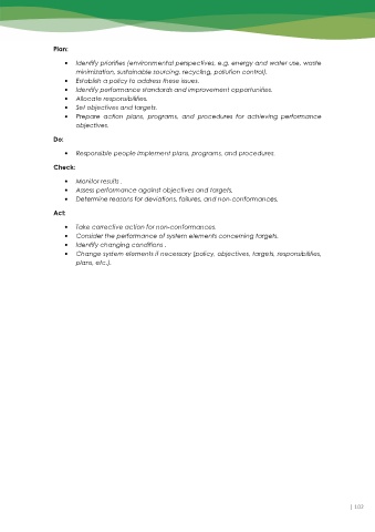 · Identify priorities (environmental perspectives, e.g. energy and water use, waste