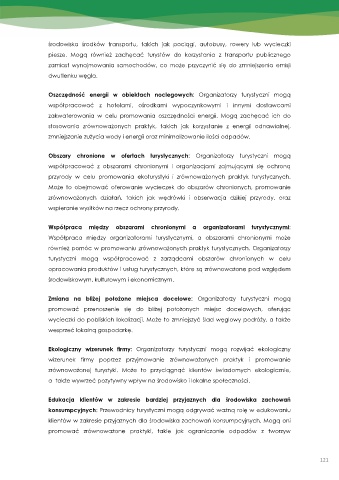 Może to obejmować oferowanie wycieczek do obszarów chronionych, promowanie