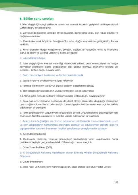 c. Açıkça iklim değişikliğini ele almaya odaklanan, sürdürülebilir tarımsal üretkenlik, uyum