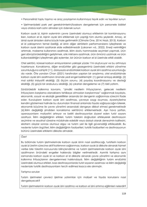 Bu bölümde turizm işletmelerinde karbon ayak izinin nasıl azaltılacağı, turistlerin karbon