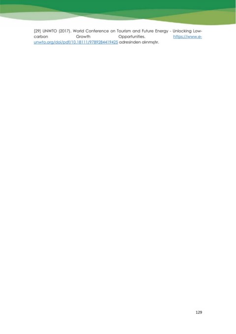 [29] UNWTO (2017). World Conference on Tourism and Future Energy - Unlocking Low- carbon Growth Opportunities. https://www.e- unwto.org/doi/pdf/10.18111/9789284419425 adresinden alınmıştır. 129