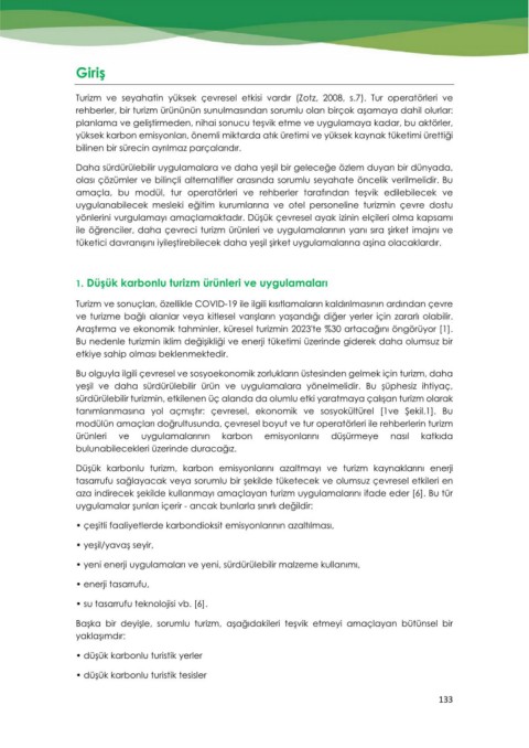 1. Düşük karbonlu turizm ürünleri ve uygulamaları