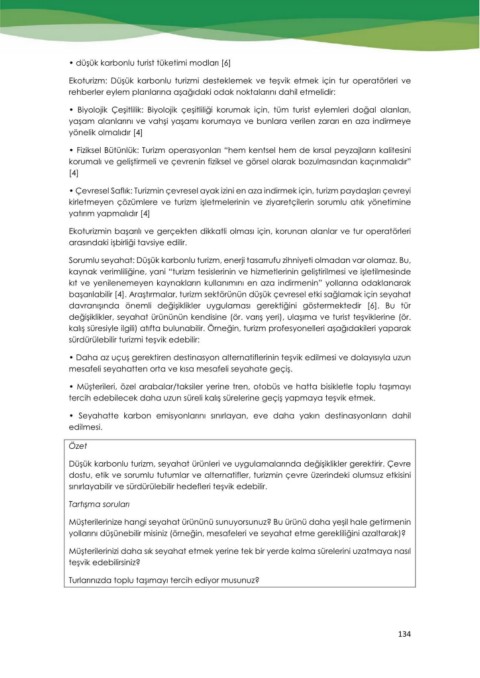 başarılabilir [4]. Araştırmalar, turizm sektörünün düşük çevresel etki sağlamak için seyahat