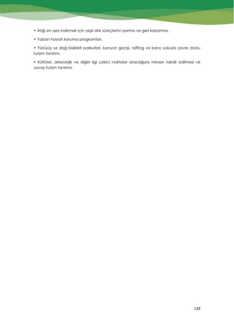 • Yürüyüş ve dağ bisikleti parkurları, kanyon geçişi, rafting ve kano yoluyla çevre dostu