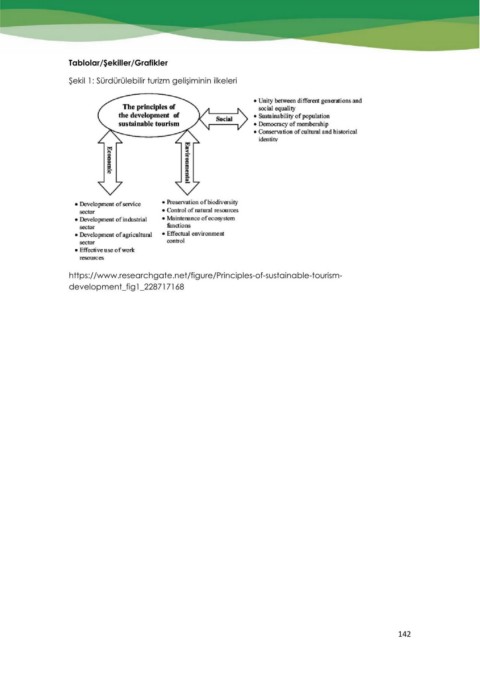 Tablolar/Şekiller/Grafikler Şekil 1: Sürdürülebilir turizm gelişiminin ilkeleri https://www.researchgate.net/figure/Principles-of-sustainable-tourism- development_fig1_228717168 142