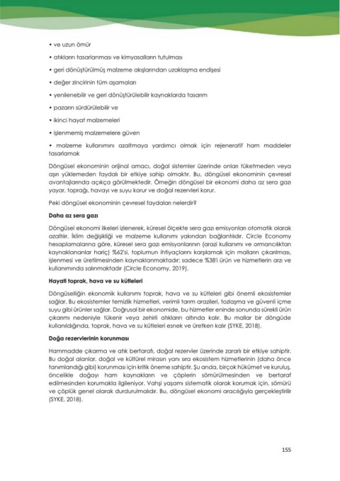 avantajlarında açıkça görülmektedir. Örneğin döngüsel bir ekonomi daha az sera gazı