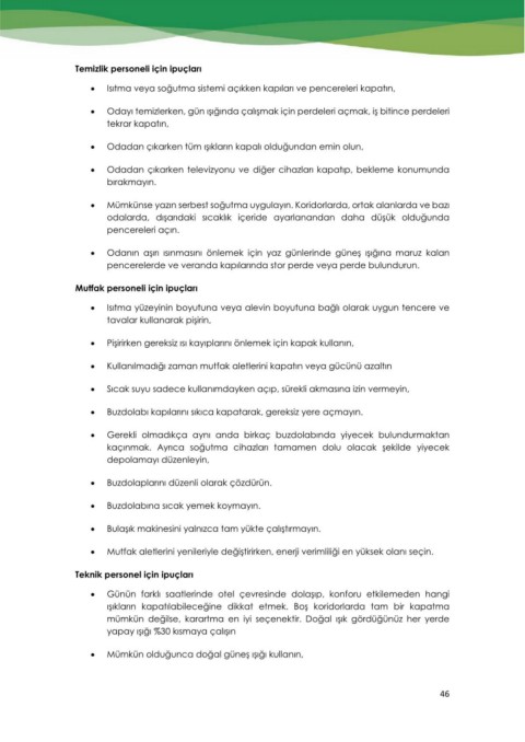 • Odadan çıkarken tüm ışıkların kapalı olduğundan emin olun,