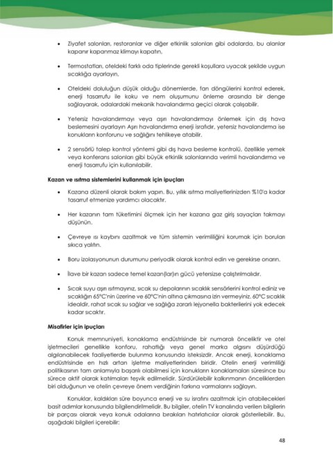 Konuklar, kaldıkları süre boyunca enerji ve su israfını azaltmak için atabilecekleri