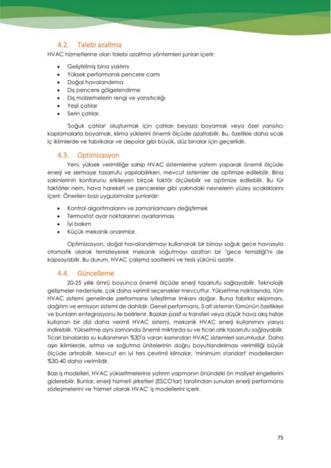 HVAC hizmetlerine olan talebi azaltma yöntemleri şunları içerir: