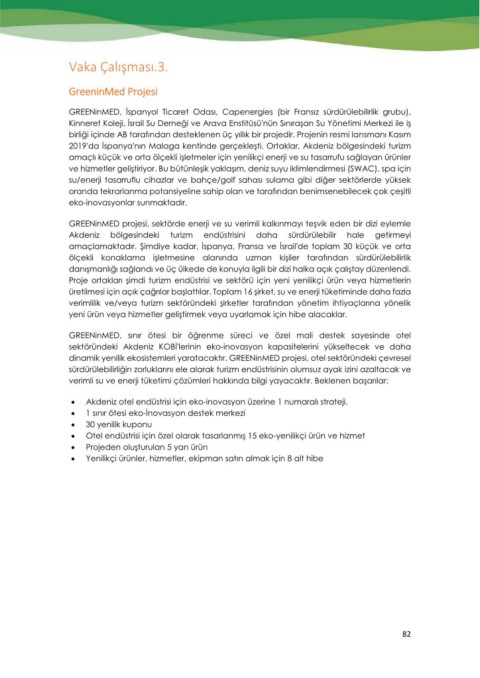 • Akdeniz otel endüstrisi için eko-inovasyon üzerine 1 numaralı strateji.