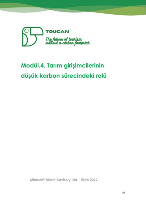 Modül.4. Tarım girişimcilerinin düşük karbon sürecindeki rolü Mindshift Talent Advisory Ida | Ekim 2022 89
