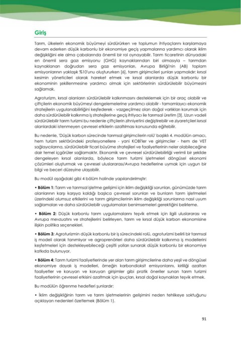 • Bölüm 3: Agroturizmin düşük karbonlu bir iş sürecindeki rolü, agroturizmi belirli bir tarımsal