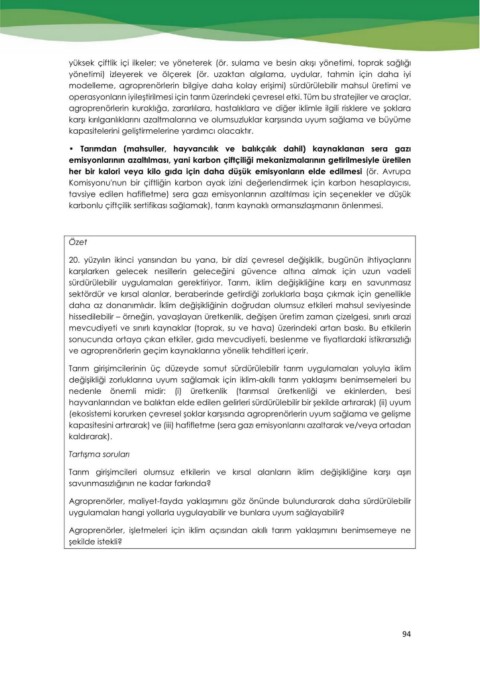 karbonlu çiftçilik sertifikası sağlamak), tarım kaynaklı ormansızlaşmanın önlenmesi.