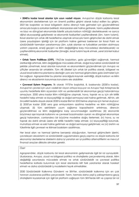 şekilde yönetmek, kırsal alanları korumak ve ekonomilerini güçlendirmek için Avrupa ve